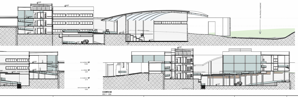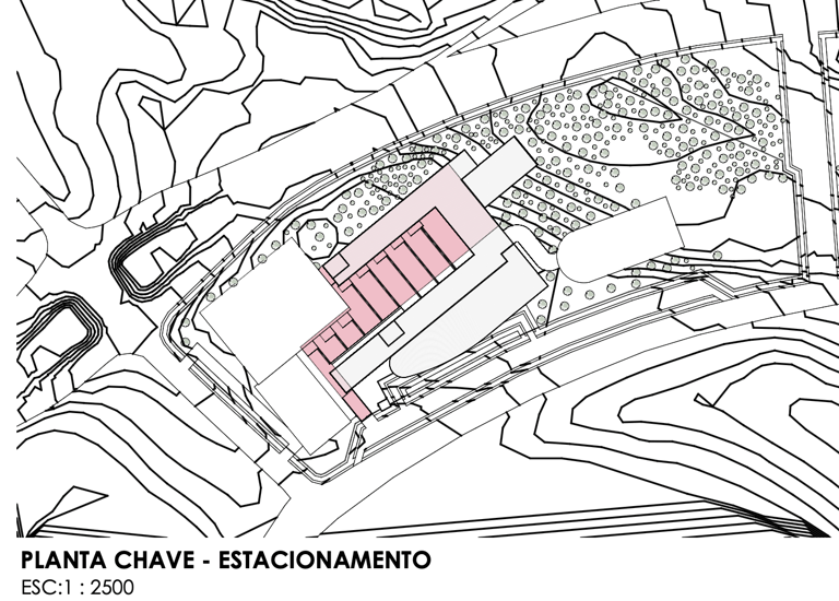Localizada no bairro Cidade Industrial de Curitiba (CIC), próxima à UTFPR, a implantação responde aos desafios de um terreno com relevo acentuado e significativa presença de vegetação (APP). Os acessos foram hierarquizados para garantir segurança e fluidez, destinando o subsolo para veículos e liberando o térreo para a convivência de pedestres. A disposição dos blocos busca ativar o entorno, mitigando a insegurança noturna característica das vias rápidas adjacentes.
