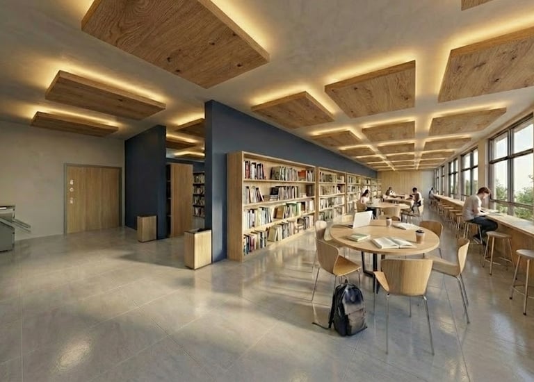 O sistema construtivo reflete a pedagogia do projeto: a estrutura em concreto armado proporciona grandes vãos livres, garantindo flexibilidade de layout, enquanto os acabamentos em madeira no forro e mobiliário asseguram o conforto termoacústico necessário para o foco e a concentração. O ambiente estende-se para fora, transformando os jardins adjacentes em salas de aula ao ar livre, materializando o conceito de que o aprendizado ocorre em todos os lugares.